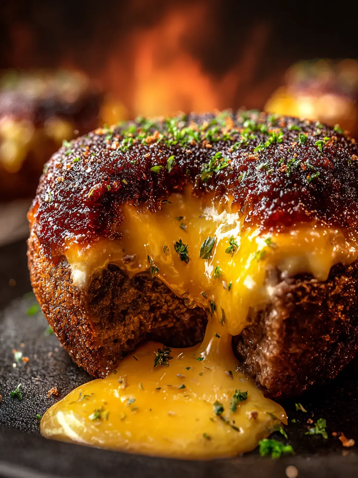Delicious cheese-stuffed beef cakes that are seared and baked to perfection. Perfect for a hearty meal!