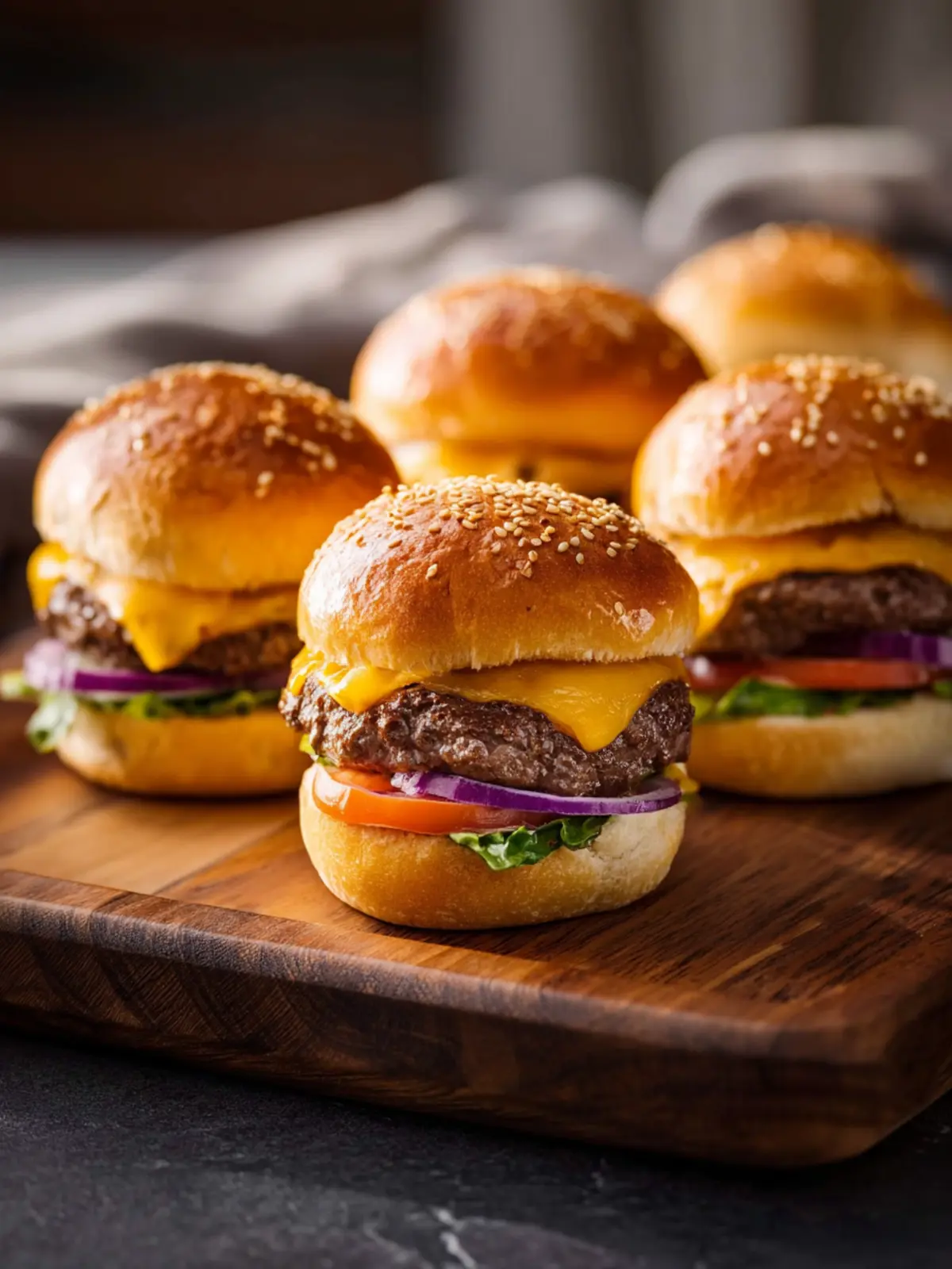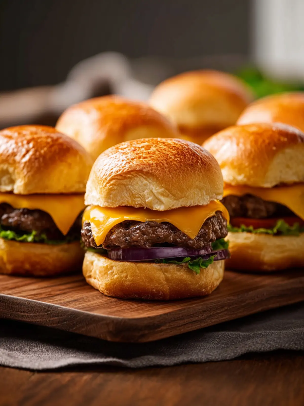 These cheesy beef sliders are perfect for a quick and satisfying meal or snack, featuring savory ground beef, melted cheese, and a delicious buttery topping.