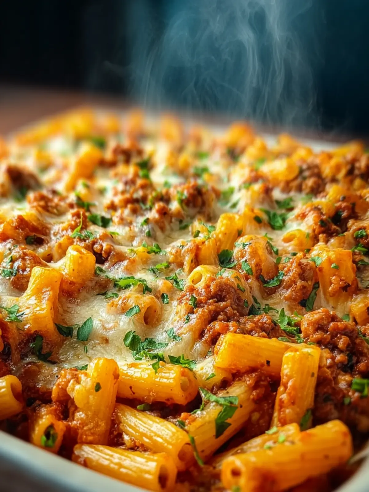 A delicious and hearty baked pasta dish made with ground turkey, tomatoes, and cheese.