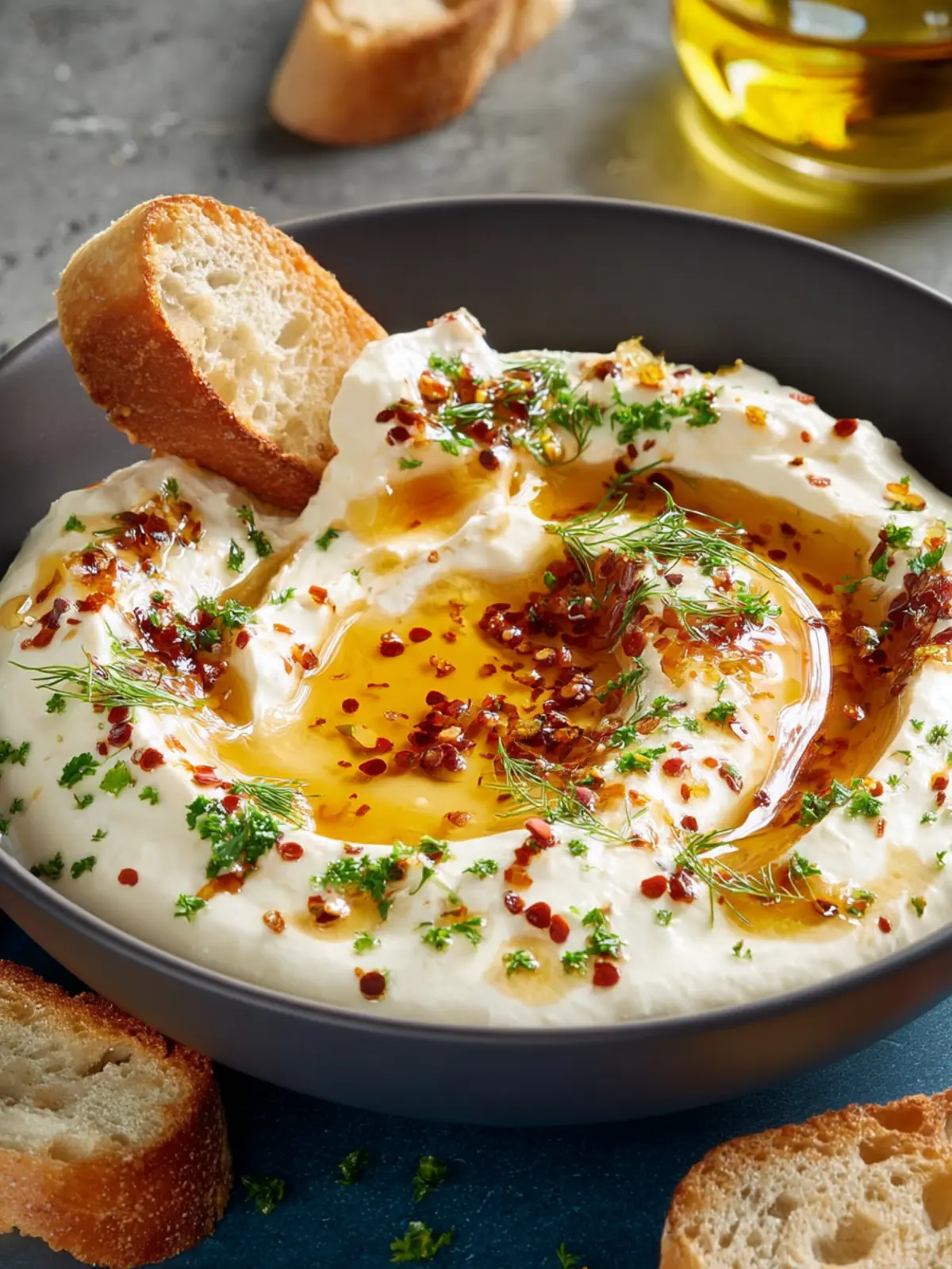 Fresh herbs: Finally, freshly chopped herbs like basil or parsley can add vibrant color and freshness, making your spicy ricotta dip not just delicious but also beautiful.